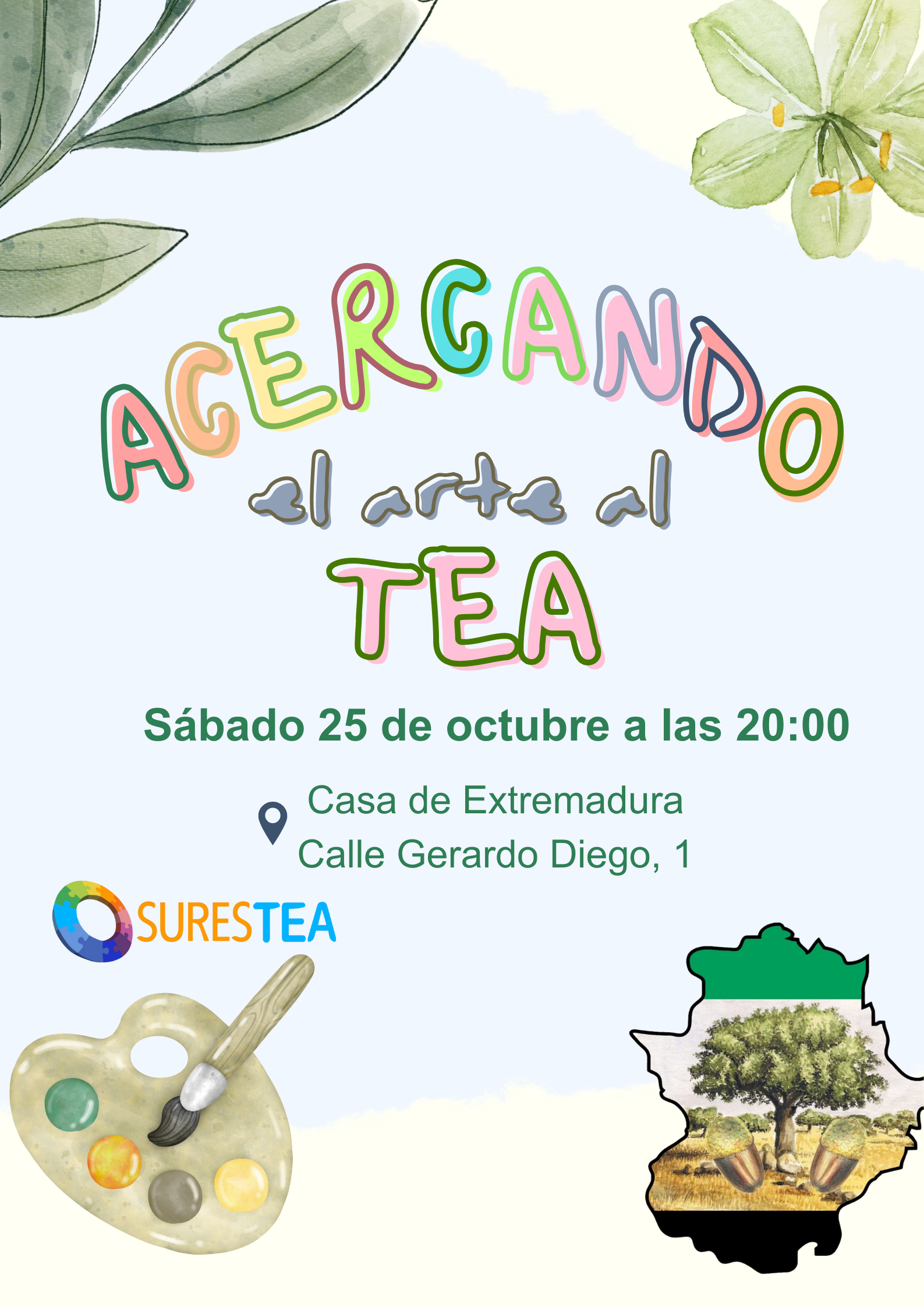 El próximo 25 de octubre a las 20:00 h te invitamos a un evento muy especial: “Acercando el Arte al TEA”, una exposición solidaria en la que distintos artistas compartirán su talento y sensibilidad a través de sus obras.